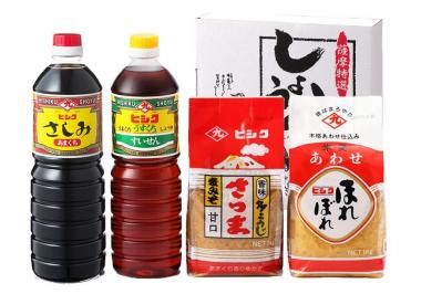 内容量:濃口甘口さしみ1L×1・淡口すいせん1L×1・香味多こうじ麦みそ1kg×1・ほれぼれあわせみそ1kg×1